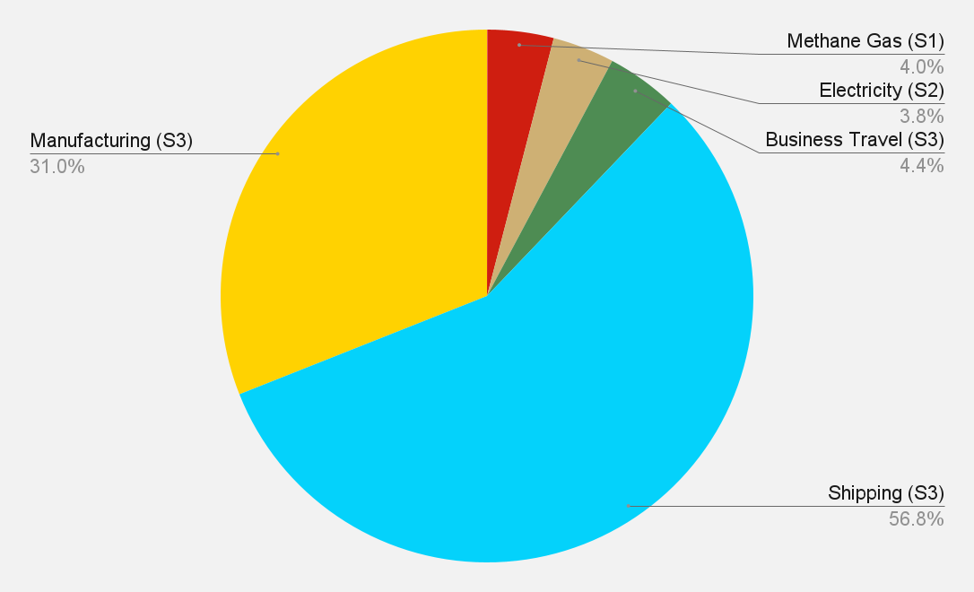 We have measured and offset our Scope 1 emissions (from methane gas used in our facilities and diesel used in a company truck) and Scope 2 emissions (from electricity use) since 2019. Over time, we have introduced measurement and reporting of our Scope 3 emissions from our business travel and manufacturing and shipping of our products. 2023 was the first year for which we have a relatively complete and accurate understanding of our entire in-house and supply chain carbon footprint, so 2023 is the baseline against which we will measure future progress toward our carbon reduction goals.